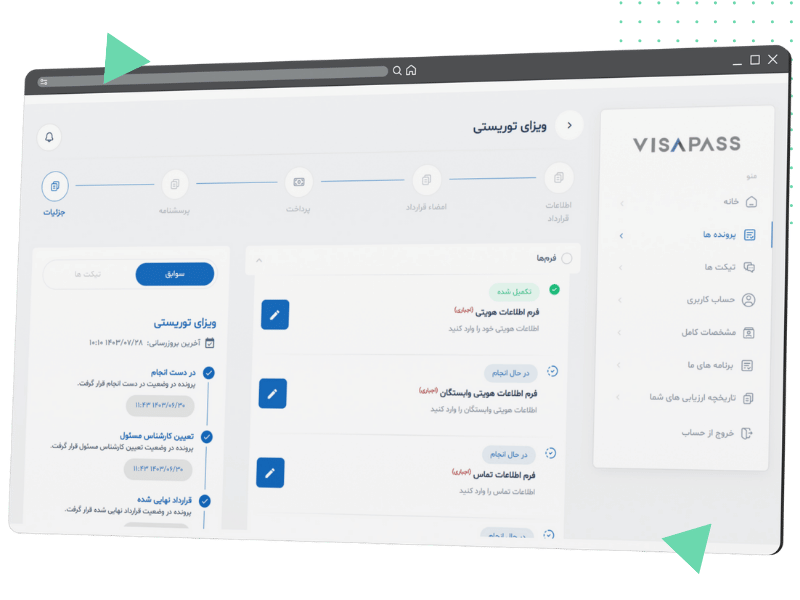 همچنین، مدارک شما در این پلتفرم ذخیره میشود تا در هر زمان که نیاز داشتید به آنها دسترسی داشته باشید. بدین صورت، شما همیشه به فایلها و فرمهای مربوطه دسترسی داشته و دچار سردرگمی و اضطراب ناشی از گم شدن مدارک نخواهید شد.